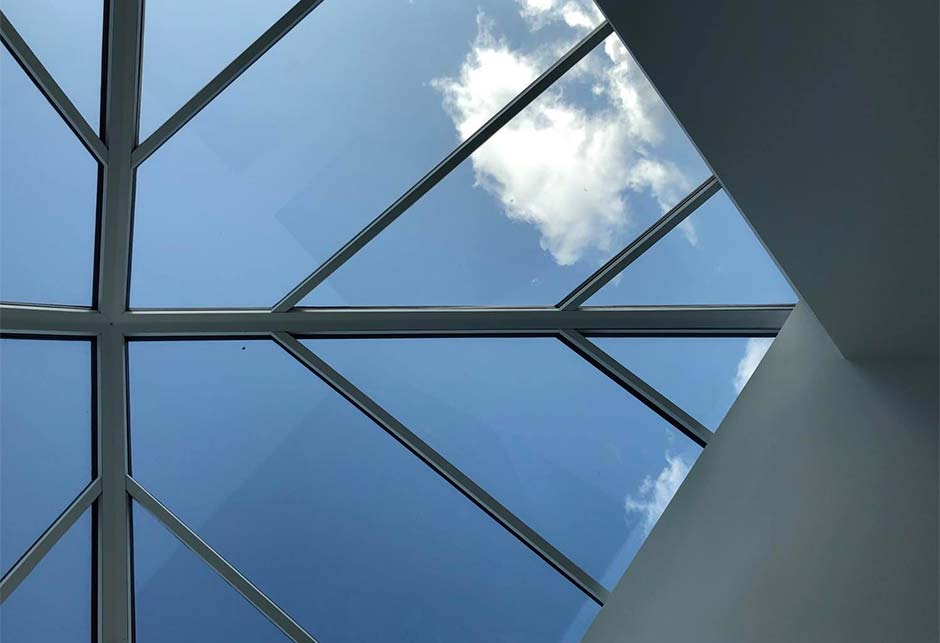 Udskiftning af glaspyramide på Kalundborg Gymnasium, energioptimerer og sikrer fortsat dagslys og frisk luft